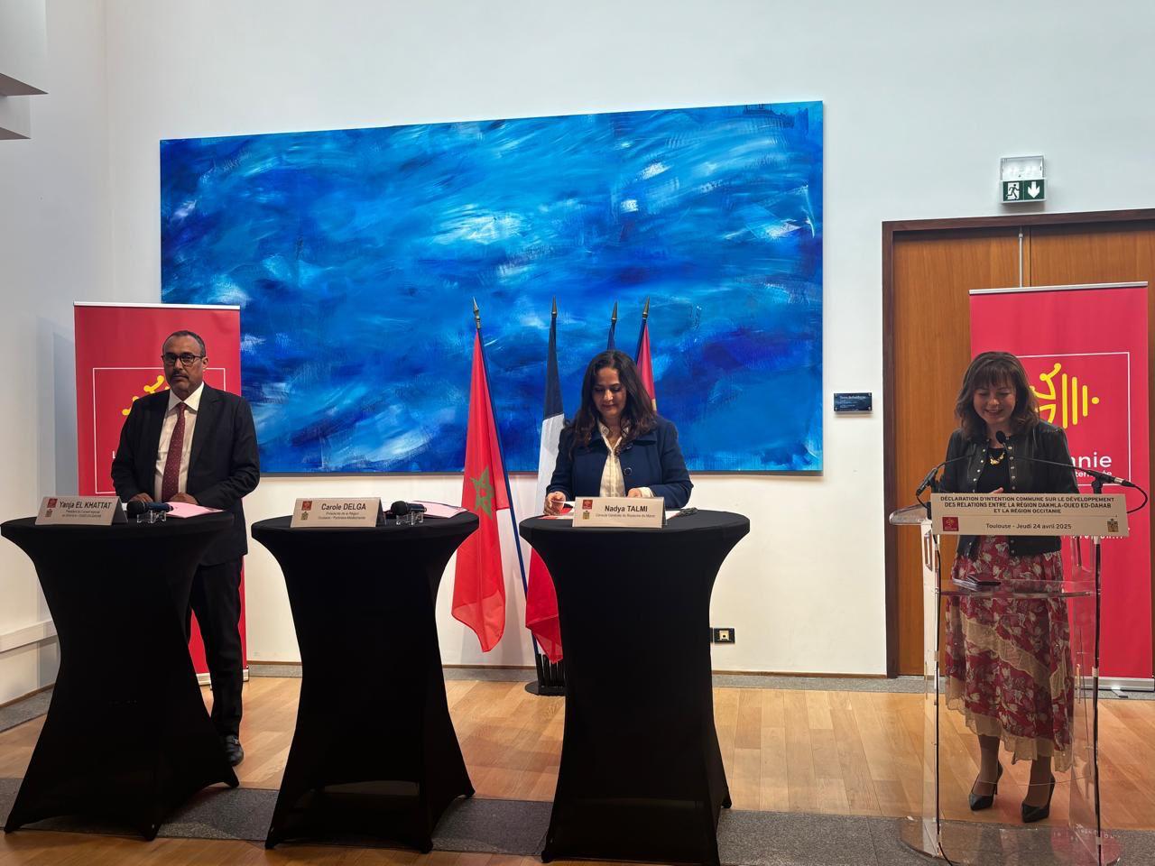 وقد تُوّج اللقاء بتوقيع إعلان نوايا يروم تأسيس شراكة استراتيجية بين جهة الداخلة – وادي الذهب وجهة أوكسيتاني، يُنتظر أن تتمخض عنه اتفاقيات تعاون قطاعية تشمل مجالات متعددة ذات اهتمام مشترك.
