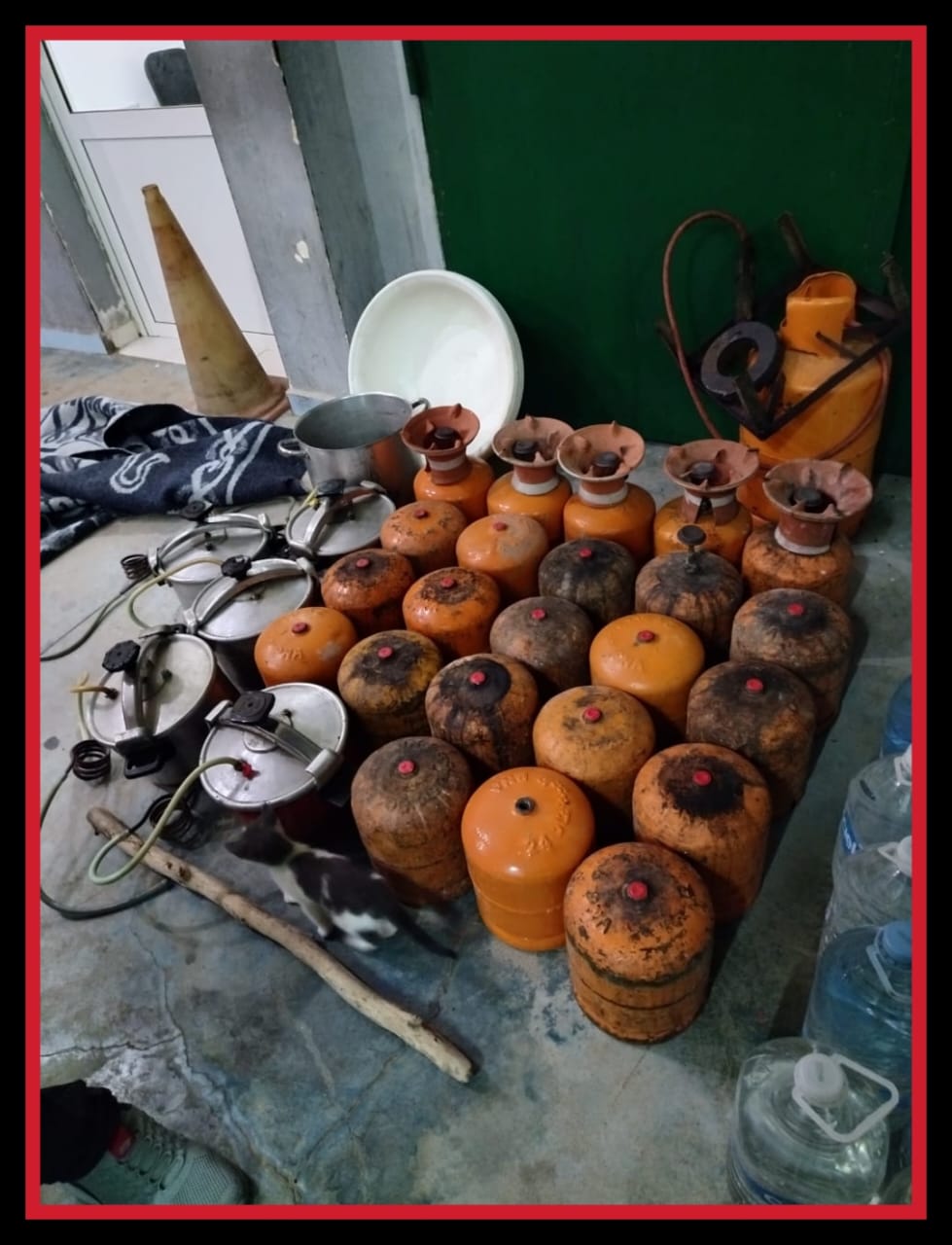 كما تم خلال العملية نفسها حجز 24 قنينة غاز، وخمس طنجرات ضغط، وفرن كبير الحجم، فضلاً عن مدية تستعمل في إعداد المواد المحظورة.