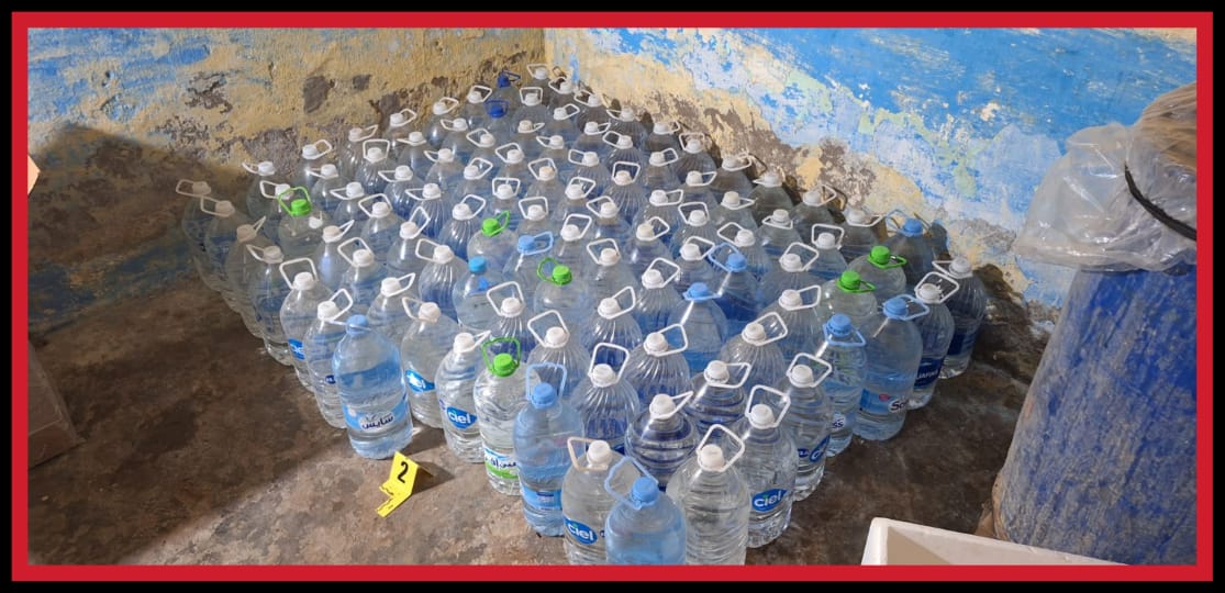 امن بوجدور يحجز أزيد من نصف طن من مسكر ماء الحياة و1800 لتر من المواد المخمرة داخل منزل المتهم