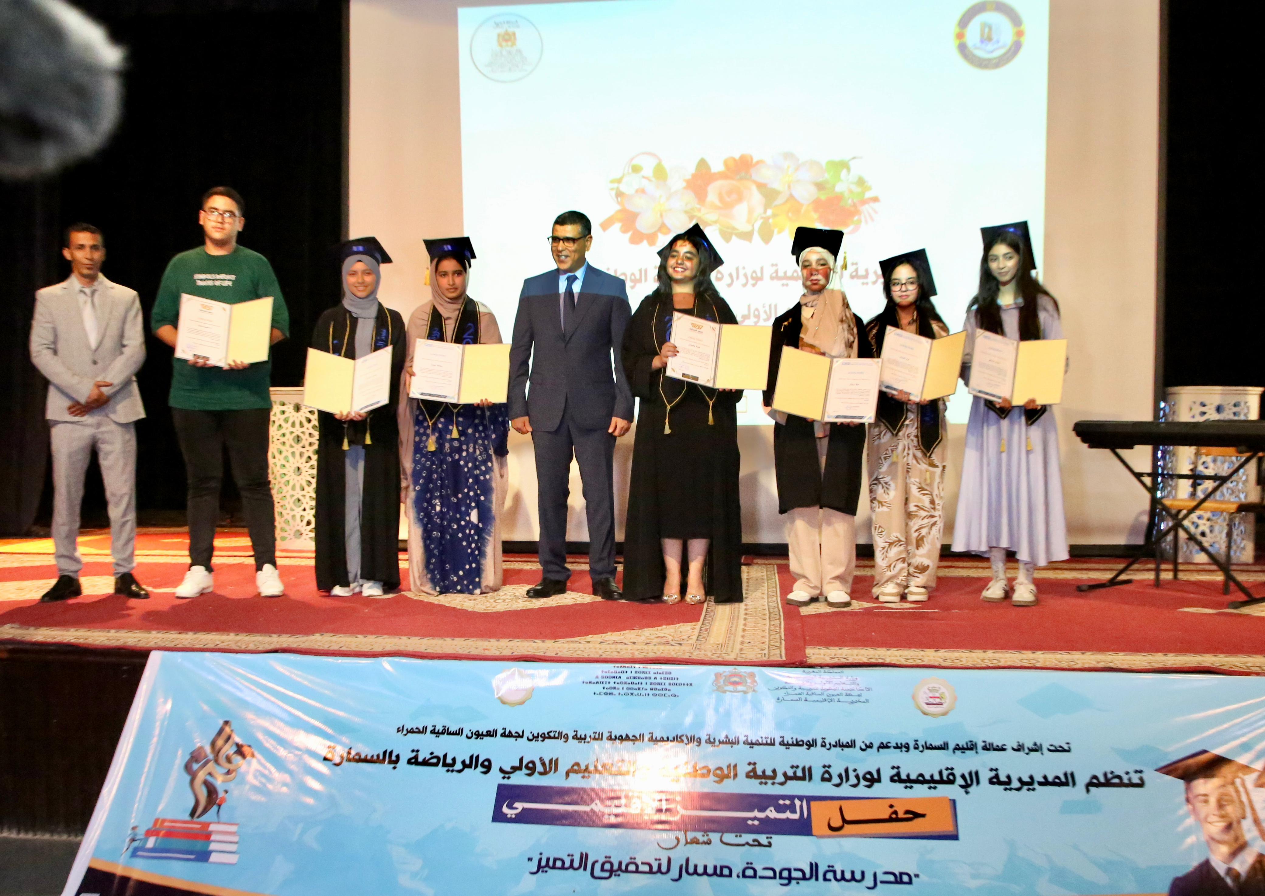 وشهد الحفل حضور شخصيات بارزة على رأسها مدير الأكاديمية الجهوية للتربية والتكوين بجهة العيون الساقية الحمراء، إلى جانب ممثلين عن السلطات المدنية والعسكرية، منتخبين، شيوخ وأعيان القبائل الصحراوية، رؤساء المصالح الخارجية، وأسر المتفوقين، فضلاً عن عدد من الفاعلين التربويين والإعلاميين.
