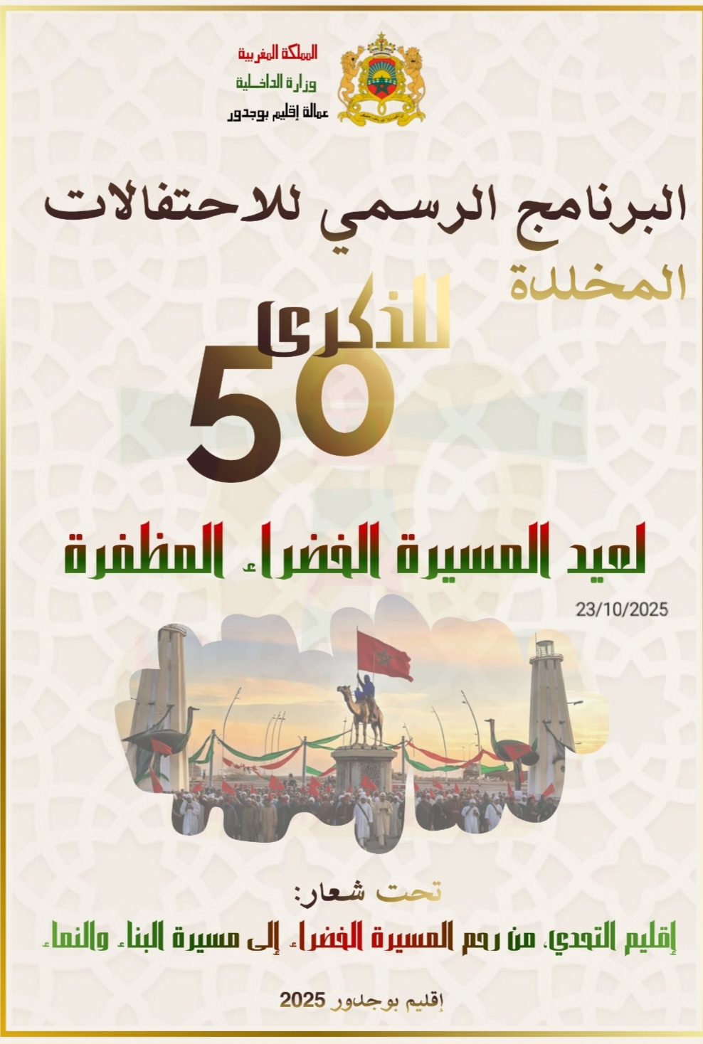 تستعد مدينة بوجدور، او إقليم التحدي كما أطلق عليها صاحب الجلالة المغفور له الحسن الثاني، للاحتفاء بالذكرى الخمسين الخضراء، مناسبة وطنية غالية على قلوب المغاربة.