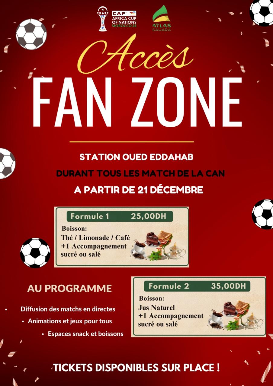 تقدم محطات أطلس الصحراء على بث مباريات كأس أمم إفريقيا 2025 CAN داخل محطاتها، في أجواء إحتفالية، مخصصة لعشاق كرة القدم ومناصري المنتخب الوطني المغربي، وذلك على مر أطوار مباريات البطولة، والتي سيتم نقلها مباشرة في محطتيها في كل من العيون (محطة المطار) والداخلة (محطة وادي الذهب).